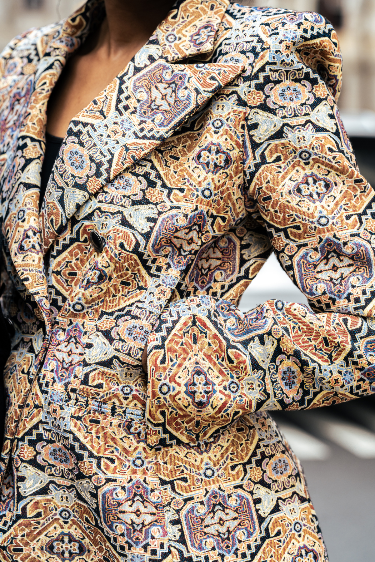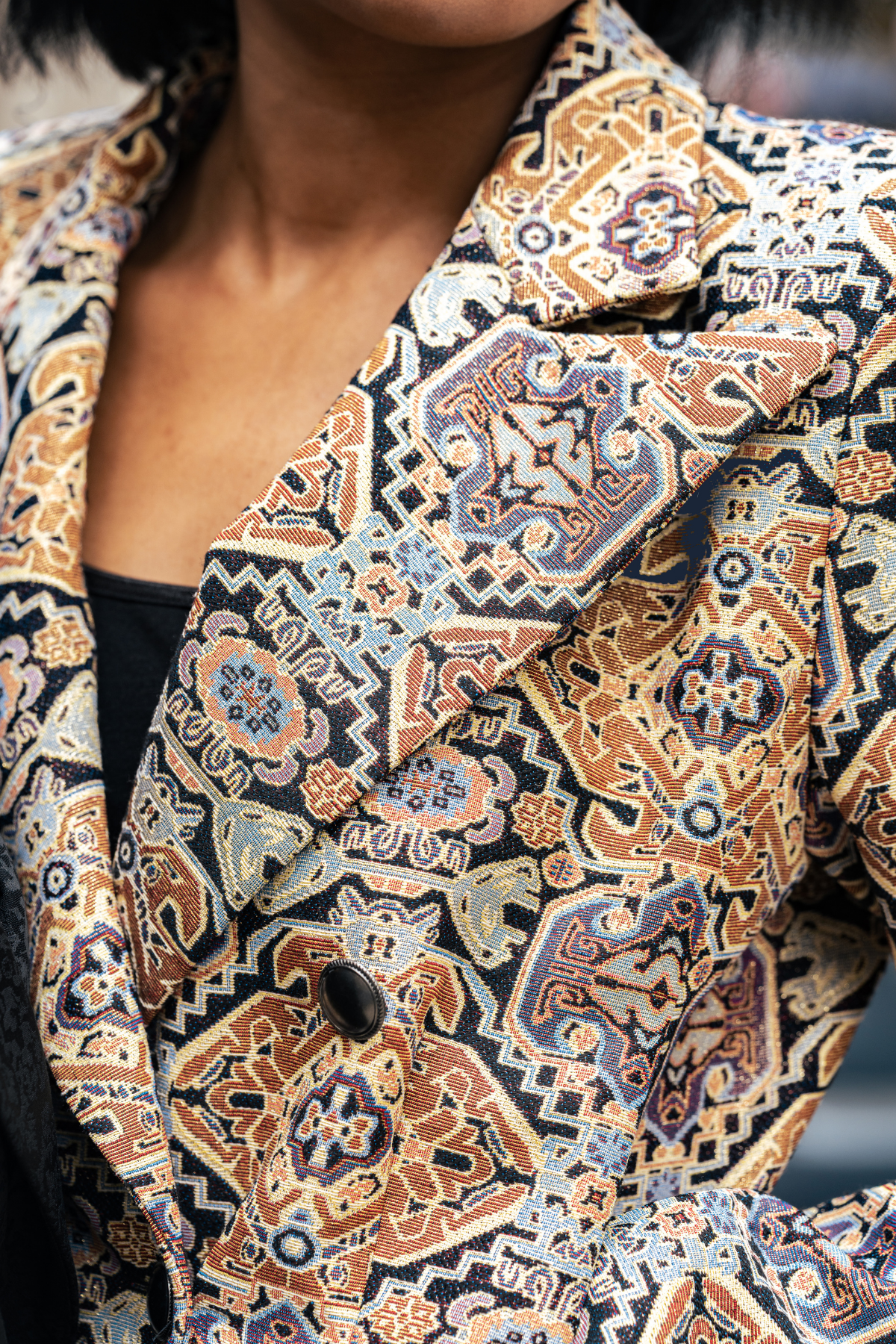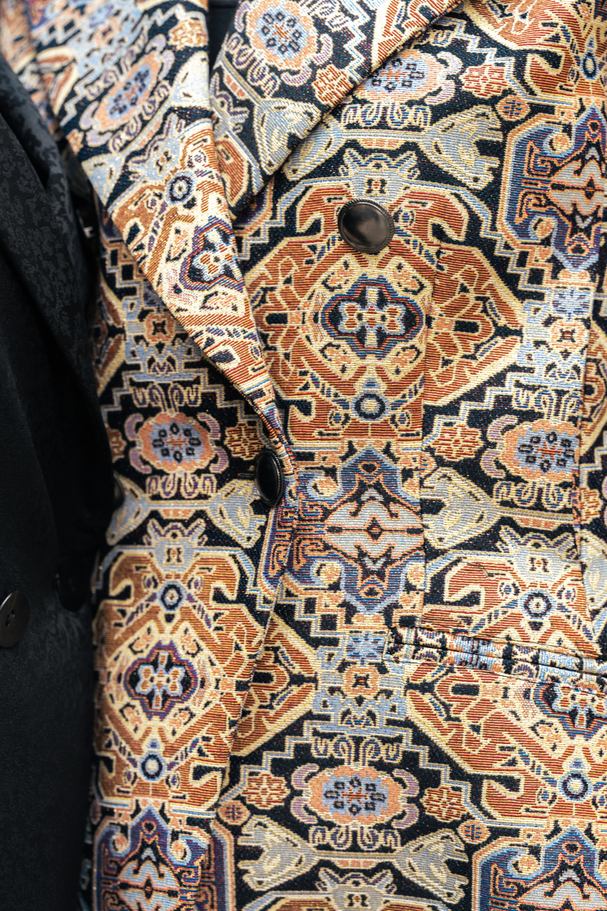 Made with a detailed tapestry-style fabric, this tapestry jacket feels just as good as it looks. Soft on the inside and rich in texture on the outside, it brings comfort and quality together in one powerful piece.
